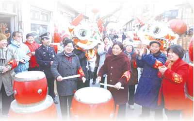2002年11月14日,北京市天壇街道辦事處西草市社區居民慶祝十六大勝利閉幕。本報記者 劉 龍攝
