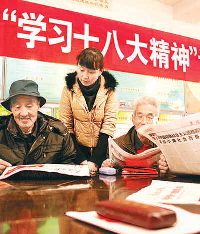 黨的十八大召開后,河北省永清縣后奕鎮董相莊村,村民在工作人員輔導下,學習十八大精神。王 曉攝(新華社發)
